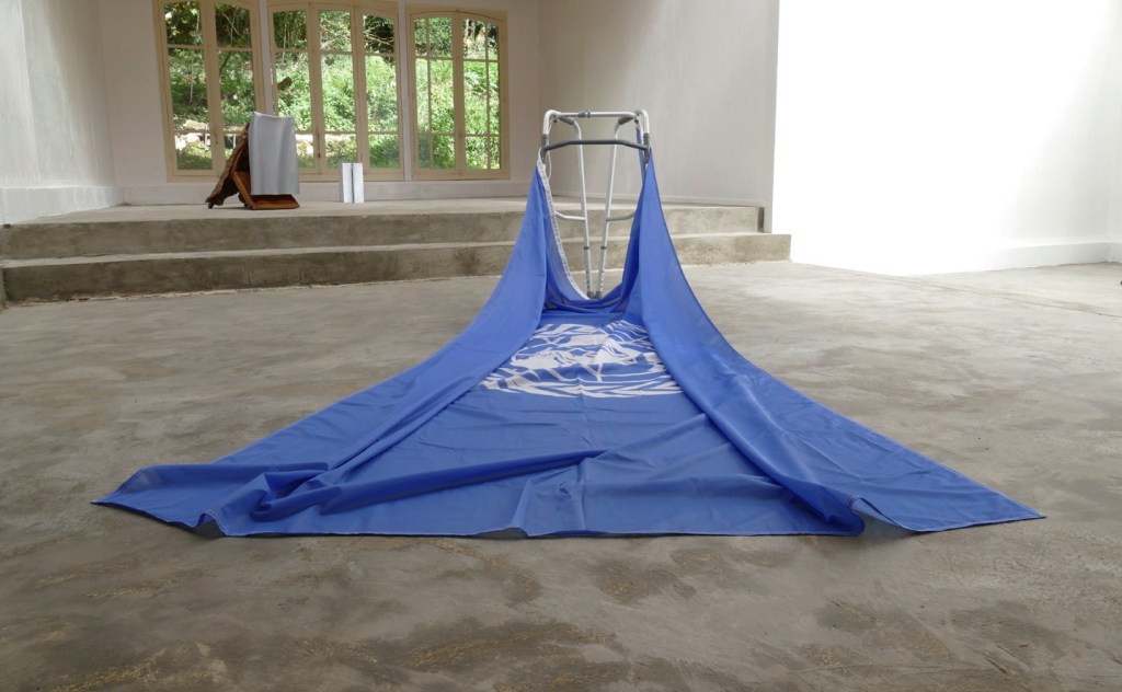 ink. 110 x 120 x 92 cm. & ‘Tabernacle [Corona Triomphalis-III]’ – 2020. aluminium, bunting. 93 x 285 x 175 cm.