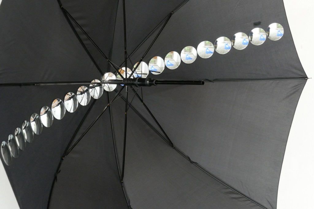 ‘Écliptique [La Vie Est Un Rêve, Moi Un Miroir]’ – 2018, umbrella, 21 convex mirrors, 105 x 35 cm.