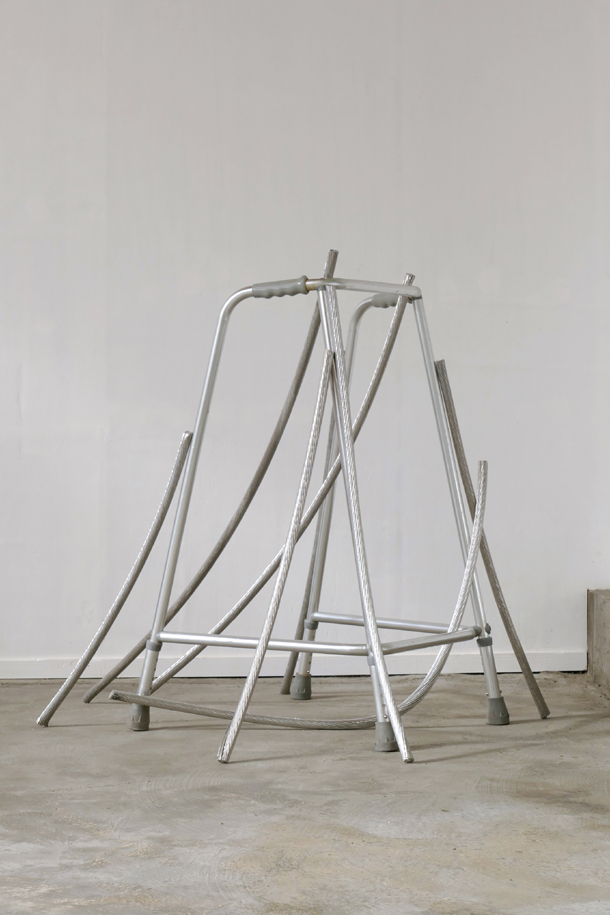 ‘Tautology’ [Corona Triomphalis -1] – 2020. aluminium. (déambulateur et cables électriques). 91 cm high.