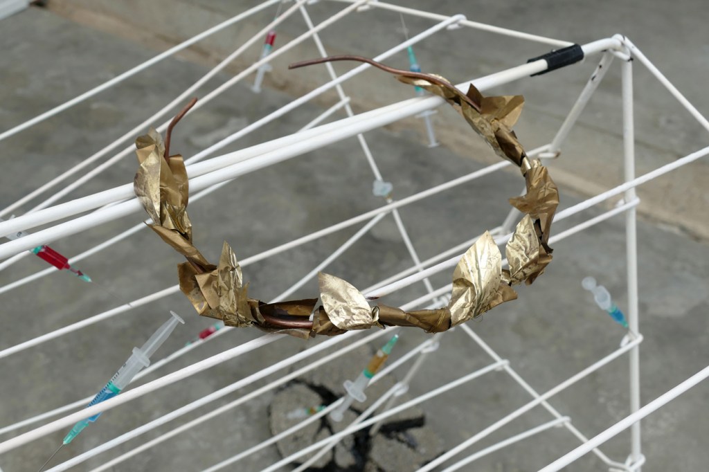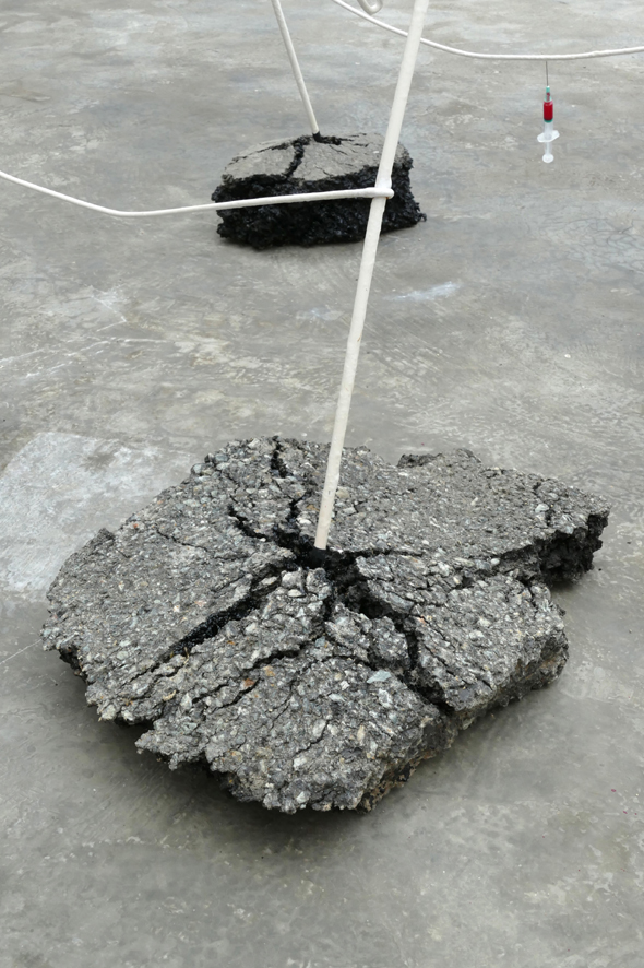 ‘The Rape of Europa [Corona Triomphalis-II]’ – 2020. concrete asphalt, plastified steel, messing, copper, injection needles,
