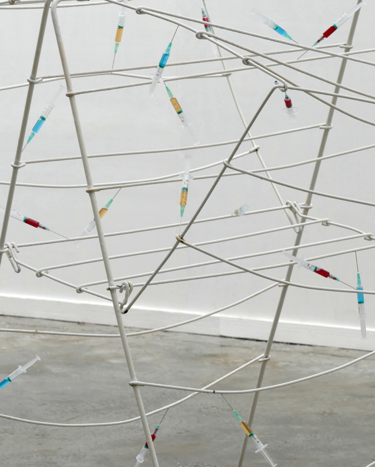 ‘Tautology [Corona Triomphalis-I]’ – 2020. aluminium (déambulateur et cables électriques). 91 cm high.