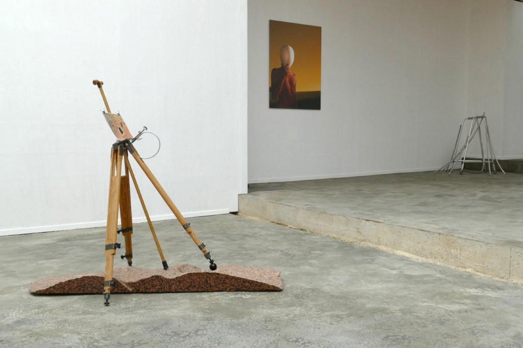 ‘Terra di Marte’ – 2019-2020. granite rose, wood, marble, clipboard with NASA photo composite of Martial surface taken on landing site by Pathfinder. Sizes: 109 h x 134 x 75 cm.