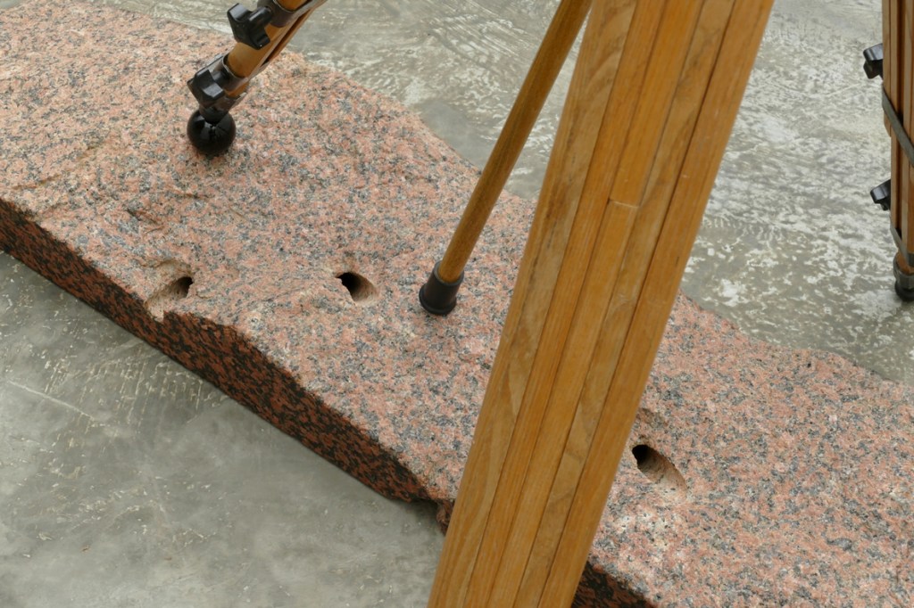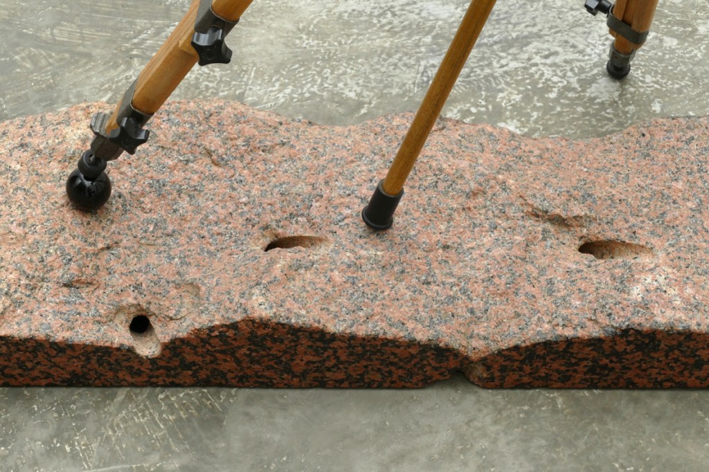 ‘Planetoïde’ – 2020. detail. granite, rose granite, aluminium, fishermen’s rope. 108 x 91 x 152 cm.