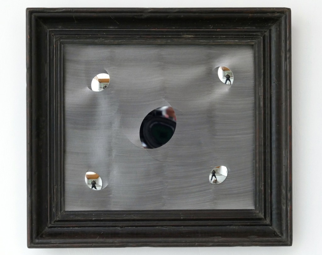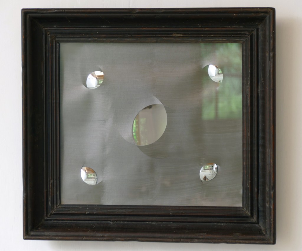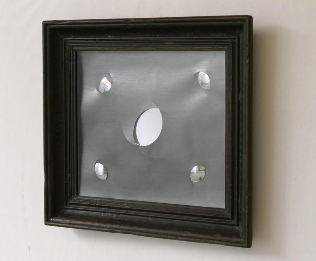 ‘Studie voor Vesica Piscis – Zijn Verschijning Is Een Verdwijning’ – 2022. graphite on paper, convex and concave mirror glass, float glass, frame, 48 x 53,2 x 6 cm.