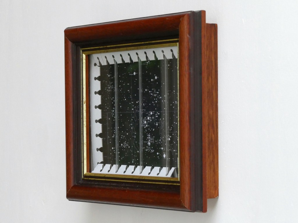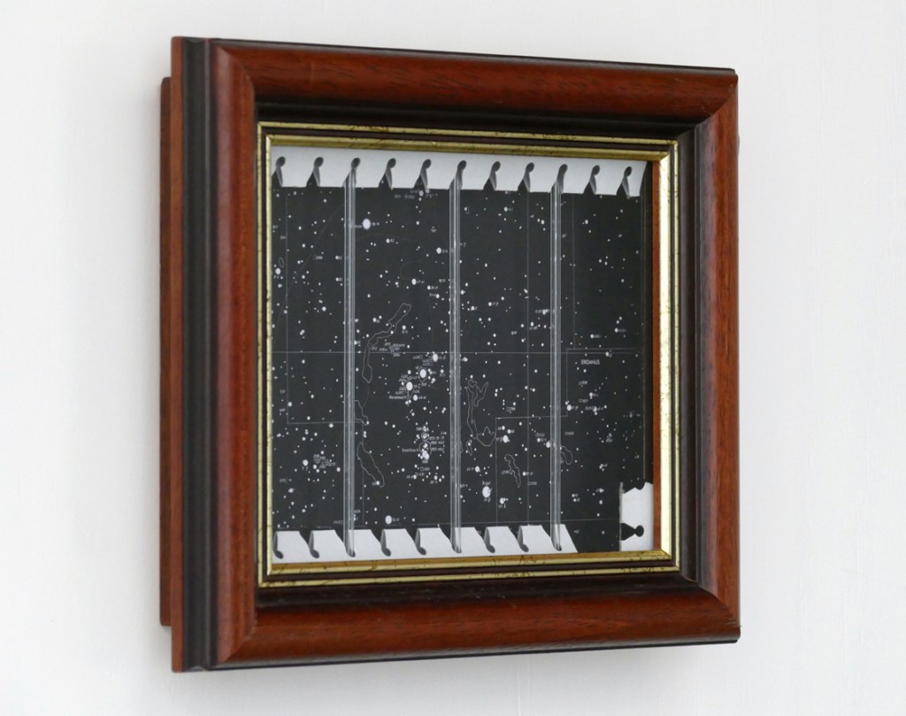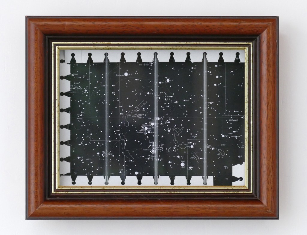 ‘Hotel de l’Univers (The Mental Gate is Unlocked)’ – 2022, paper, starmap, glass tubes, float glass, frame, 25,3 x 31,3 x 5,5 cm.