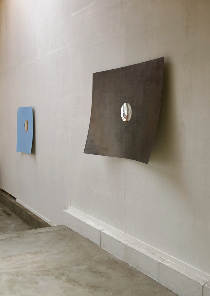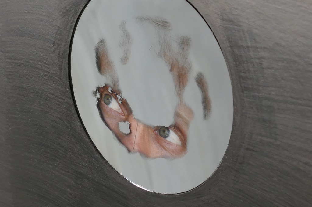 Reflection and outward-throwing by the hollow mirrors is balanced by the actual penetration of the (mirror) surface into the space behind it, which equally sucks the viewer back into the work.