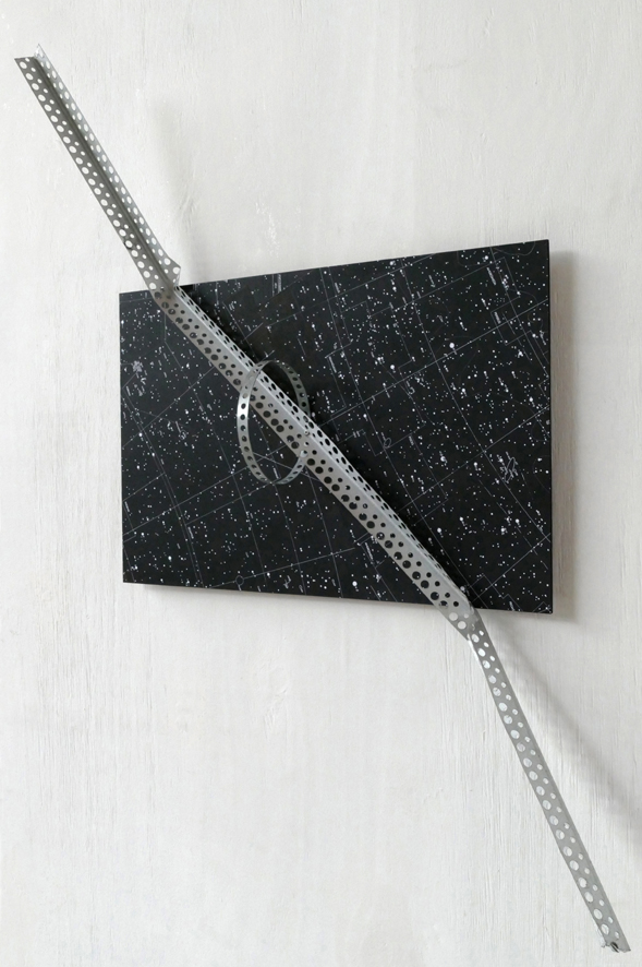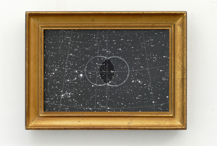 Twee cirkels welke elkaar door hun middelpunt snijden, zijn uitgefreesd vanaf de achterzijde van het glas. Door de cylinderboor onder een schuine, maar tegenovergestelde hoek in te laten dringen, is het middendeel waar de cirkels elkaar overlappen nu een absorberend gat geworden dat een kaart van een deel van de sterrenhemel toont. Het omringende glas neigt daarentegen altijd een deel van het invallende licht te reflecteren. De groef in het glas varieert qua breedte en schept zo een plasticiteit als van transparante bellen, welke vrij zwevend, of langs een denkbeeldig hemelkoord , door de ruimte bewegen. De dikte van het glas verschaft aan het werk niet alleen een frontaal aangezicht, maar vraagt er om het vanuit verschillende standpunten te bekijken.