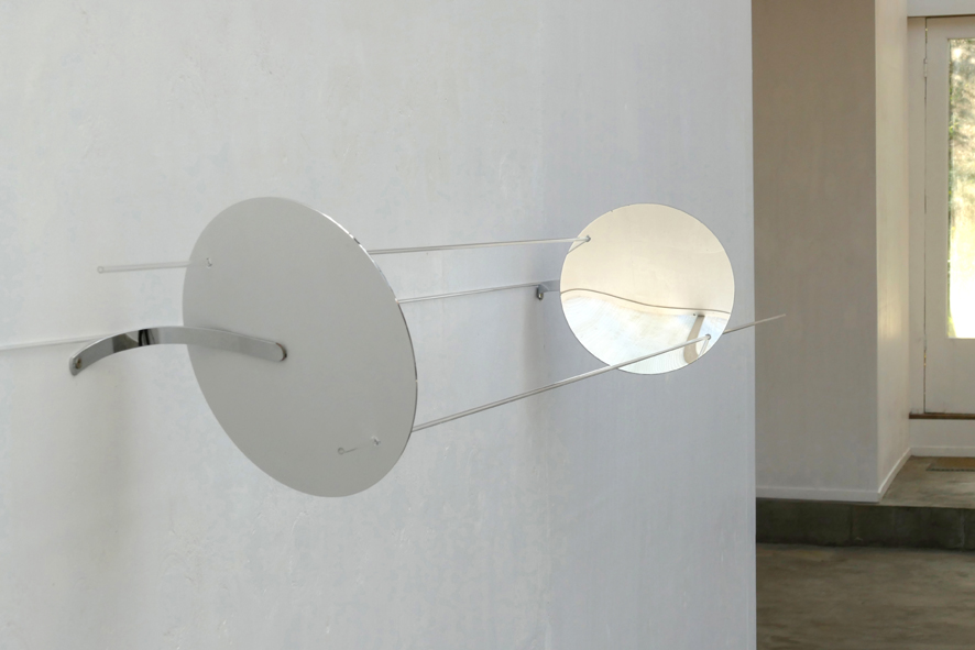 Sinds enkele jaren werk ik aan het project De Revolutionisbus Orbium Coelestium. Het is een antwoord van de kunst op de soms bijna onaantastbare dogmatische status van sommige wetenschap, met de astronomie aan de top, waarbij de kunst alles kan doen ‘wankelen’. Deze nieuwe werken met concave spiegels – op het gezicht identiek aan de optiek van een 20cm astronomische Newton-telescoop – zijn hier een vervolg op. Al met al een opeenstapeling van uitdijende en inkrimpende omtrekken, middelpunten en verbindingslijnen: eigenlijk de taal van het universum zelf.