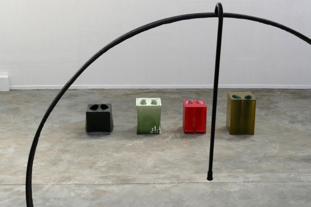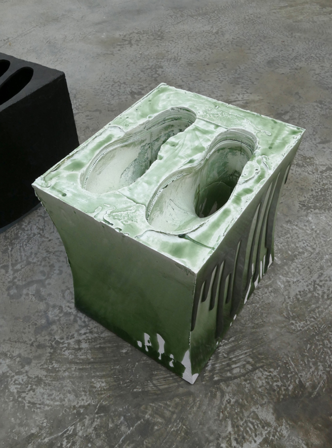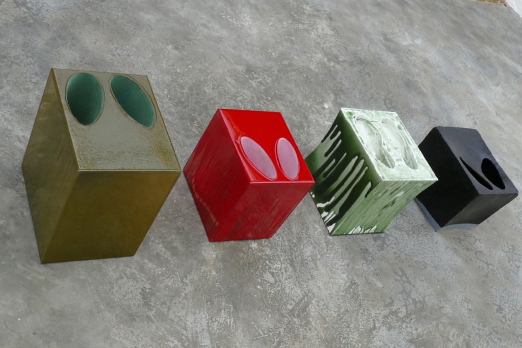 ‘Chymische Hochzeit’ [Nigredo-Purgatio-Destillatio-Regeneratio] – 2020. 4 parts. rubber, resin, pigment, silicon rubber, pu-rubber, plexi glass, plaster. 39 x 33½ x 180 cm. (privat collection Friesland)