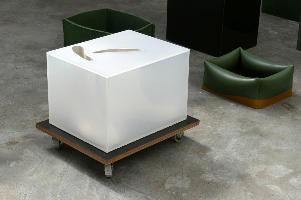 It is for this reason that I use rubber outdoor boots as a main motif in their reference both towards ourselves as well as our (natural) surroundings. By ‘locking’ these objects inside their own proportional dimensions, as well as by reversing inside – outside and thus exchanging positive and negative space, they become not only unserviceable, but our psychological perception on what we consider as empty or real is being questioned. In fact, by removing the actual boundary between empty space and object, all fundamental and conceptual boundaries between ourselves and the things that surround us, such as ‘us and them’, ‘this and that’, ‘me and the world’ loose their validity.
