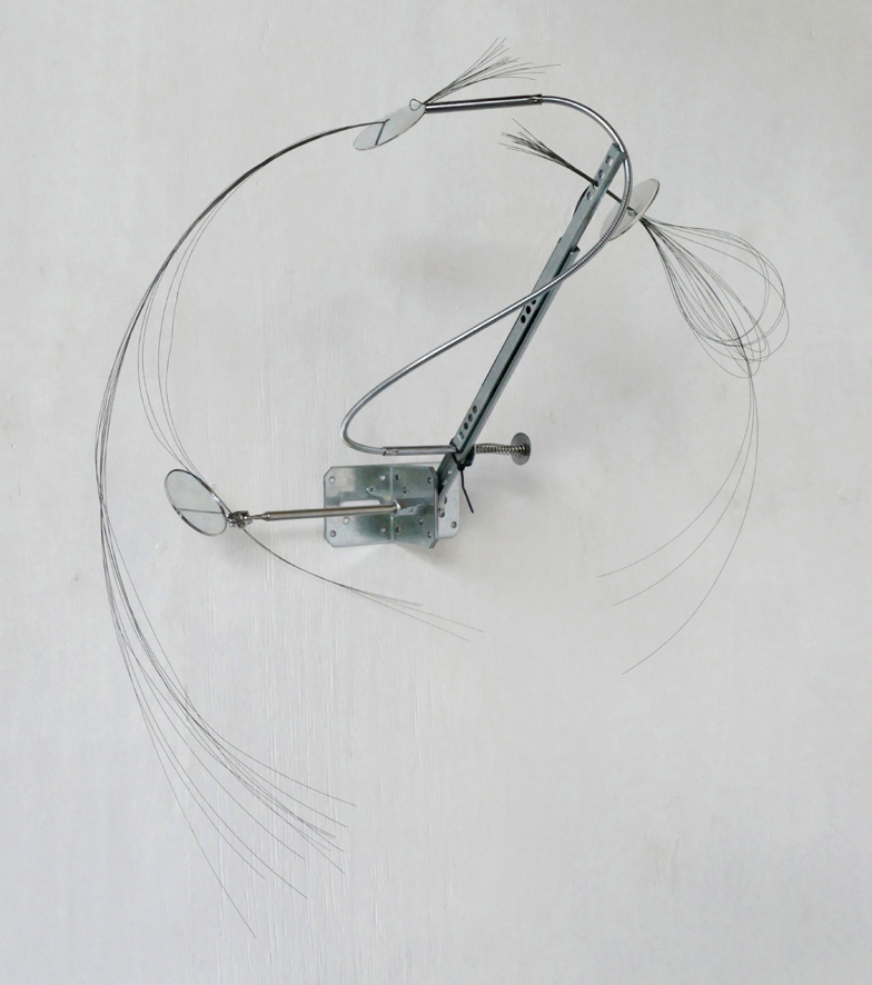 ‘Constellations Célestielles [Spyware, Warfare & Spaceflares]’ – 2019 #2, metal, mirror glasses, steel spring wires.