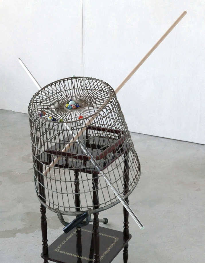 ‘Sterrenklok [Nocturnal]’ – 2019. detail, metal, wood, glass, marbles, walking stick. 215 x 116 x 87 cm.